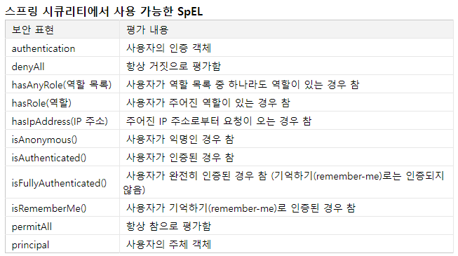 access(String str) - 인자로 들어온 SpEL식의 결과가 true이면 접근 허용
