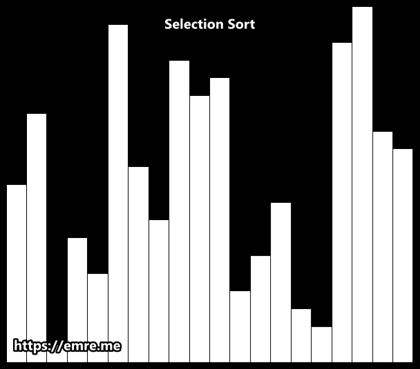 제일 큰 index부터 찾아 배열의 맨 뒤부터 정렬하는 알고리즘이다. 한 번의 loop를 수행하고 나면 가장 큰 원소가 배열의 지정한 범위 맨 뒤에 놓이며, 그 다음 loop에서는 그 원소를 제외한 나머지 중에서 가장 큰 원소를 찾는다. 유사하게 작은 index부터 찾아 배열의 맨 앞부터 정렬 할 수도 있다.