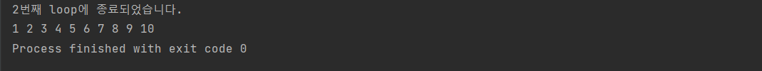 System.out.println(cnt+"번째 loop에 종료되었습니다.");