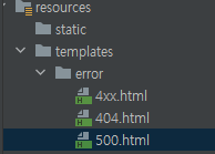 BasicErrorController는 /resources/templates/error 아래에 존재하는 html문서들을 에러가 발생할 경우 자동으로 등록한다. html의 이름에 따라서 404 error가 발생하면 404.html, 403 error가 발생했는데 403.html이 존재하지 않는 경우 4xx.html 이런 우선순위(구체적->추상적)로 작동한다.