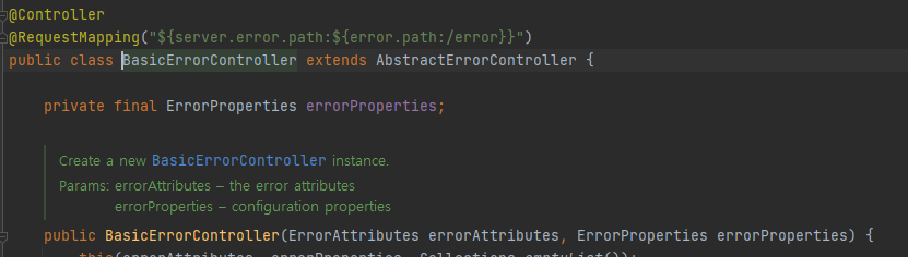 따라서 개발자는 스프링이 제공하는 컨트롤러(BasicErrorController)를 이용해서 오류 페이지를 표시할 뷰 파일만 등록해주면 된다.