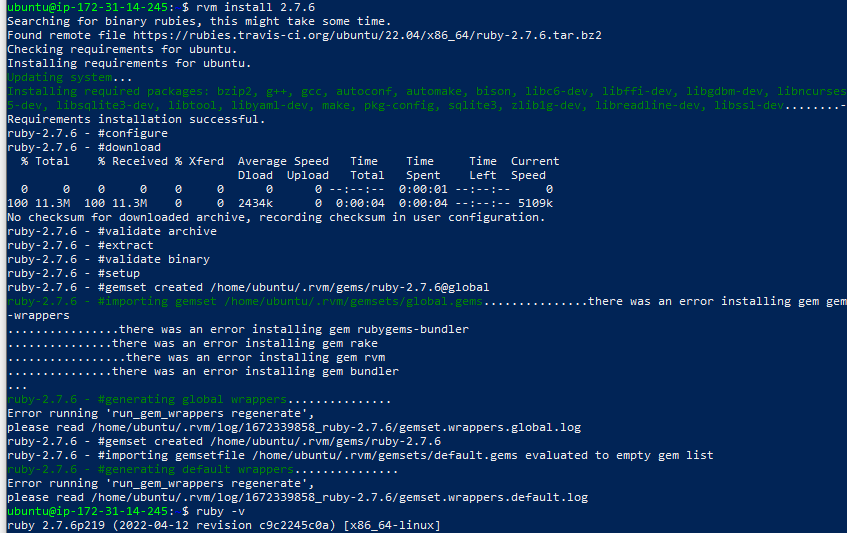 으로 rvm 스크립트 로드후 예전 ruby버전 (나는 2.7.6) 설치