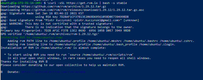 rvm 설치하기위해서 https://www.infracody.com/2022/06/install-ruby-rvm-on-centos-7-linux.html 이걸 따라했는데 또 오류가 발생.