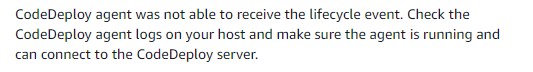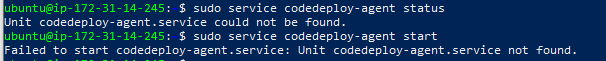 > Codedeploy agent가 running되지 않았다는 소리 같은데.. 확인해보면 돌아가고 있다.
