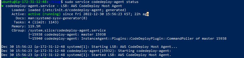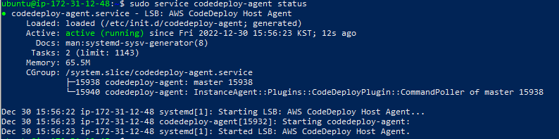 5. codedeploy의 agent가 띄워져있는지 확인(iam역할 재부여했으니 sudo service codedeploy-agent restart) -----> 실패