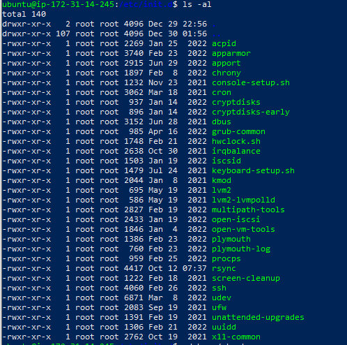 )에도 불구하고 안되고, 그렇다고 sudo serivce codedeploy-agent start를 해도 위 사진처럼 Unit codedepoy-agent.service not found가 뜨는 것을 볼 수 있다. service라는 명령어가 리눅스의 /etc/init.d 디렉토리의 링크파일을 시작/종료/재시작 등을 하는 커맨드라고 하는데, /etc/init.d경로로 들어가보니 codedeploy-agent라는 링크파일이 존재하지 않는 것을 확인할 수 있었다. 왜 링크파일이 안생기는거지?
