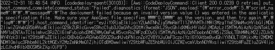 -> appspec file specifies "0,0" as the version이라는 메세지를 봐서 버전 명시를 해줘야 하는것 같음