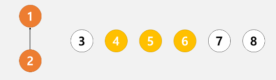 3. 그러면 2번 노드가 속한 트리의 대표 노드는 1이다.