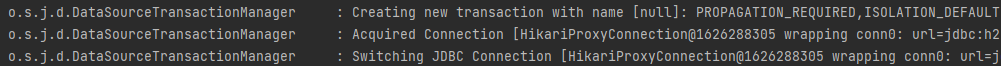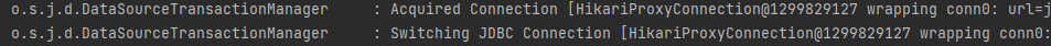 위 히카리 프록시 커넥션과 동일한 물리 커넥션을 사용하지만, 프록시 객체의 주소가 다르므로 둘은 다른 커넥션이며, 생성된 트랜잭션도 다르다고 할 수 있다.