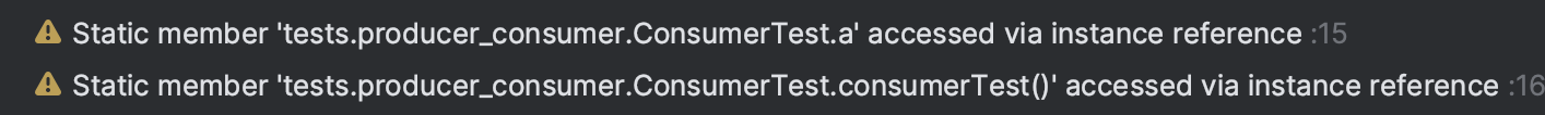 자바는 클래스명이 아닌 인스턴스를 통해 static 멤버에 접근하는 것을 허용하고 있다. 나는 자바에서 static키워드는 논리적으로 대체하기 어려운 중요한 문법이라고 생각한다. 하지만 이러한 자바의 너그러움(?)으로 인해, 개발자는 인스턴스의 멤버에 접근할 때 이것이 static인지, non-static인지 알 수 있는 방법이 없다. IDE가 띄워주는 경고가 아니었으면 일일히 클래스에 들어가서 멤버에 static이 붙었는지 확인해야 할 수도 있다.