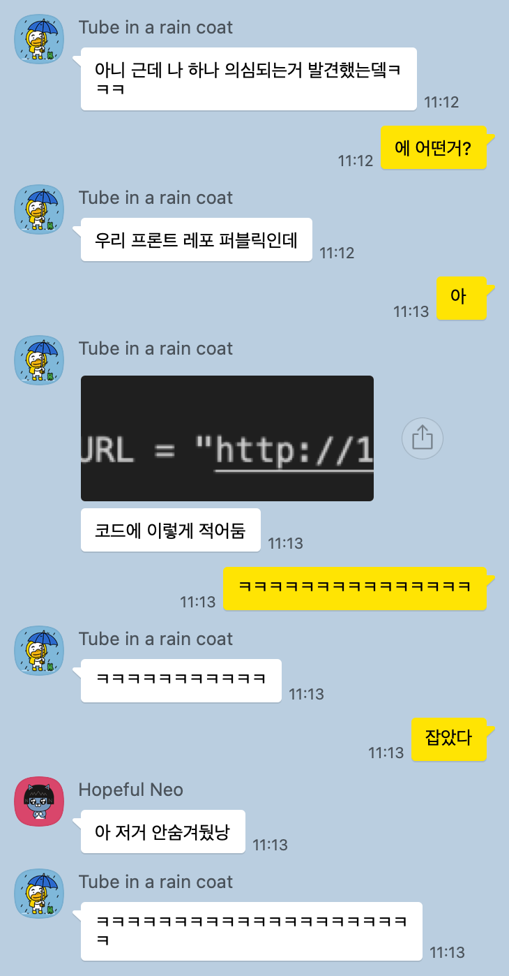 (백엔드에서 잘 처리해놨다고 생각해도 어떤식으로든(노션, 발표자료, organization 등등..) 노출될 수 있으니 항상 조심하자)