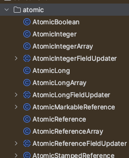 AtomicInteger는 int 자료형을 가지고 있는 wrapper 클래스이다. AtomicInteger 외에도 AtomicBoolean, AtomicLong 등의 래퍼 클래스들이 존재한다.