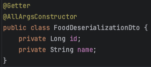 그런데 프로젝트 진행 중에 DTO에 기본 생성자가 없어도 역직렬화 과정에서 오류가 나지 않는 것을 발견했다.