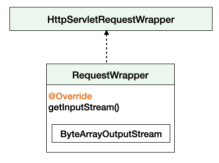 그래서 나는 Request를 Wrapping하는 방법을 사용했다. 찾아보니 이러한 목적으로 제공하는 'HttpServletRequestWrapper'라는 래퍼 클래스가 존재했고, 나는 기존 inputsream을 읽어서 다른 outputstream에 저장한다음, getInputStream()을 해당 outputstream에서 읽도록 하는 방법을 사용했다.