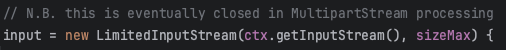ctx가 Request객체를 감싼 ServletRequestContext인데, 결국 다시 말하면 Request클래스의 getInputStream을 호출한다는 것이다. getInputStream() 메서드를 보자