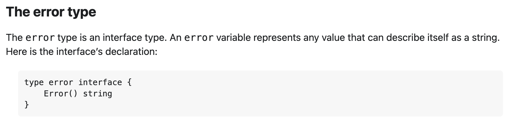 정확하게 말하면 이 error형이라는 것은 타입은 아니고, Error()라는 함수 하나를 갖는 인터페이스이다.