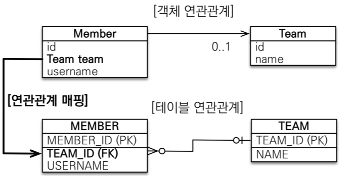 테이블에서는 외래키와 기본키만을 이용하여 1개의 연관관계에서 관계를 맺는다. 반대로, 사실 객체끼리는 회원->팀, 팀->회원의 두가지 단방향 연관관계를 사용하여 관계를 맺는 것이다. 다시 말하면, 사실 객체끼리는 양방향 연관관계가 존재하는 것이 아니라 각 객체에 상대 객체멤버를 넣어주어 관리하는, 두 가지 단방향 연관관계가 존재하는 것이다.