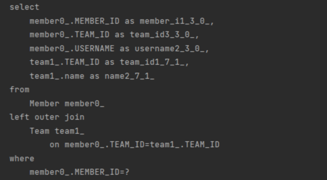 반대로 즉시 로딩을 사용하면 Member만 조회시에도 연관관계가 설정된 Team까지 가져온다. @OneToMany 관계이거나 테이블이 복잡하게 얽혀있는 상황이라면 즉시 로딩을 사용하면 원하지 않는 쿼리문들이 join을 위해 나가게 되니, 큰 스케일의 프로젝트라면 지연 로딩만을 사용하자.