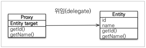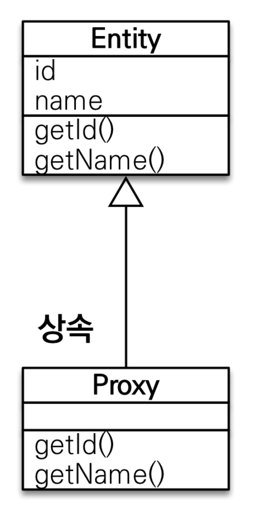 프록시 클래스는 실제 클래스(엔티티)를 상속받아 만들어진다. 따라서 비즈니스 로직에서는 이것이 프록시 객체인지, 실제 엔티티인지 구분없이 사용 가능하다.