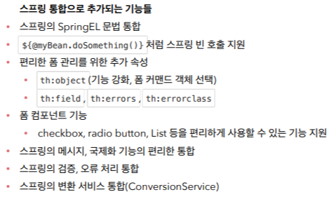 타임리프는 스프링과 통합을 위한 다양한 기능을 제공한다.